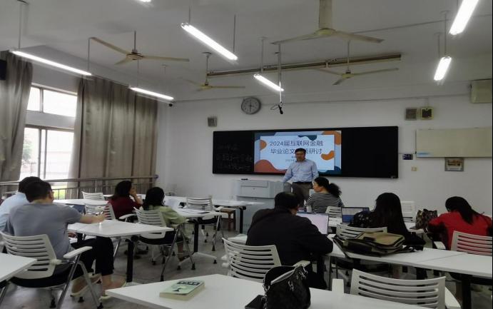 为保证互联网金融专业毕业论文选题质量,提高论文指导教师的理论水平,金融学系于2023年9月25日召开线上腾讯会议,互联网金融专业毕业论文指导老师全部参加,金融系系主任周明栋布置了毕业论文题目审核任务,要求各位指导老师按照学院要求认真审核论文题目,并定于周三线下开会复审。9月27日周三下午金融学系在4105教室开展2024届毕业论文选题复审工作,会议由金融系周明栋主任主持,数字经济系主任苗书迪主任、数字经济系代表老师、金融学系全体教师参加。