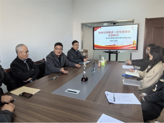 为深入落实立德树人根本任务,推进课程思政建设理论研究和教育教学实践,2023年12月6日下午,财务管理系召开“党建引领推进一流专业课程思政建设”专题研讨活动。本次活动邀请学院党委副书记(主持工作)马卫东教授和马克思主义学院李正治教授出席,会议由财务管理系主任杨森主持。