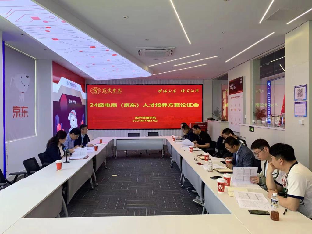 2024年4月27日上午,电子商务系在京东产教融合中心二楼召开电子商务专业2024级人才培养方案论证会。会议由电子商务系主任胡长深主持,宿迁学院经济管理学院院长兼电商系带头人肖艳和教务处相关代表出席了会议。国内知名高校院长和相关企业领导作为受邀专家,对人才培养方案提出了宝贵建议。
