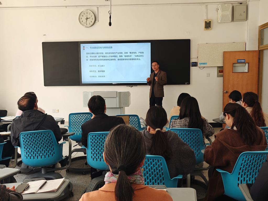 物流管理专业带头人窦志武教授分享了近期物流管理系在教研方面取得的成果。他详细阐述了物流管理专业如何成功获批省级产教融合型品牌专业及第三批省级品牌专业的历程,分享了专业建设过程中的宝贵经验和教科研成果,展望了未来专业建设目标的实现路径,并指出了达成这些目标所需的关键要素。