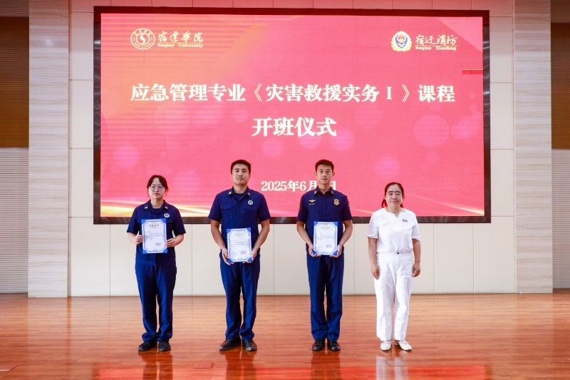 6月9日至13日,宿迁学院经济管理学院与宿迁市消防救援支队携手,在江苏省地震救援培训基地举办首期《灾害救援实务Ⅰ》课程培训活动,经济管理学院副院长姜丽丽、宿迁市消防救援支队副支队长张树永出席开班仪式并致辞,45名应急管理专业学生参加培训。