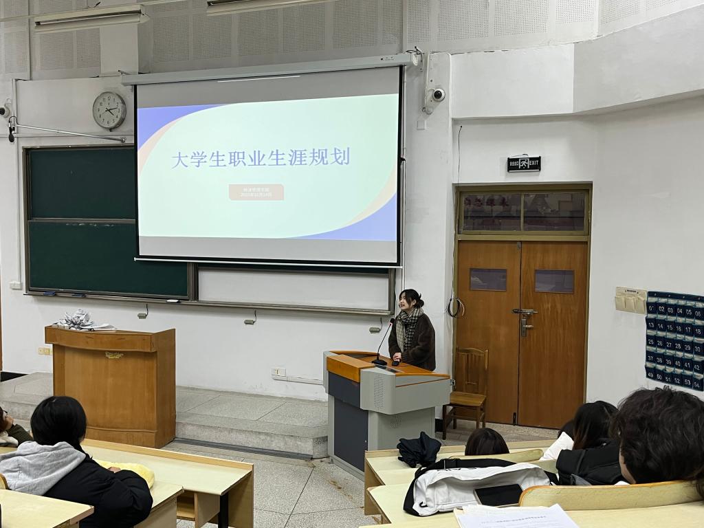 为培养学生职业生涯规划意识,进一步帮助学生树立正确正确就业观、择业观。2023年12月14日,经济管理学院辅导员刘佳欣老师在2号教学楼召开大学生职业生涯规划主题班会。