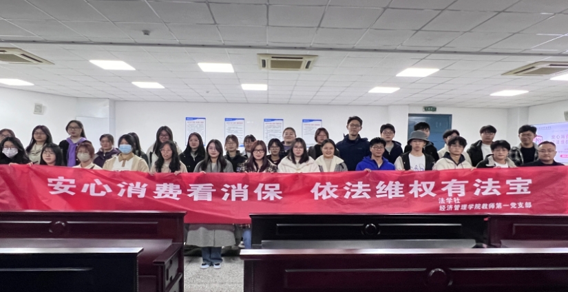 2024年3月15日,在消费者权益保护日来临之际,为了便于大学生志愿者开展消费者权益保护活动,经济管理学院教师第一党支部与法学社联合举办了消费者权益保护宣讲活动。此次宣讲活动以“安心消费看消保,依法维权有法宝”为主题,教师第一党支部书记戴仁卿将生活中典型消费者权益保护案例和防范措施向与会者进行了宣讲。
