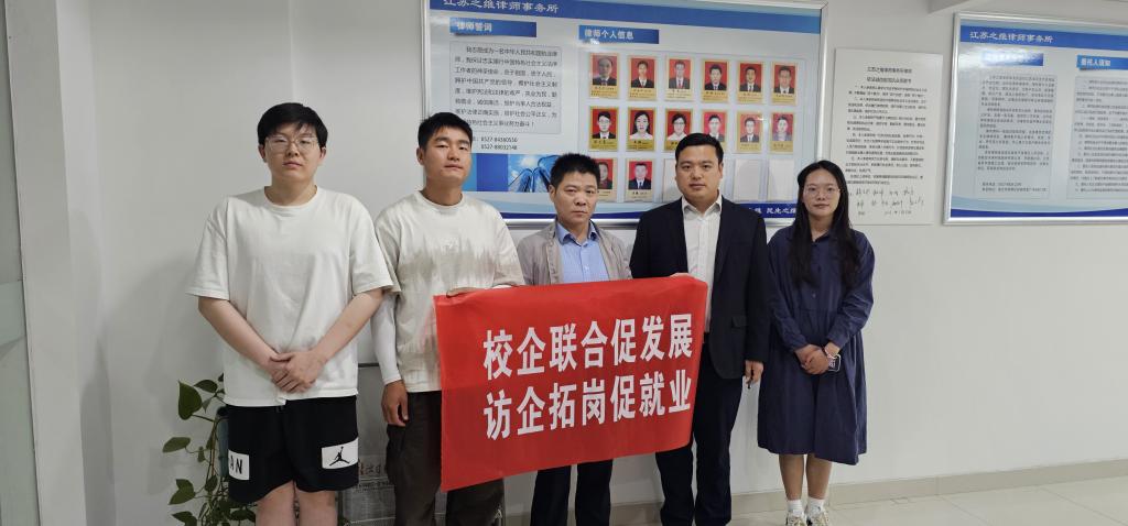 5月16日,为深入贯彻落实教育部“访企拓岗促就业”专项行动计划,深化产教融合,拓宽学生就业渠道,持续提升人才培养质量,我院法律系系主任尹维达分别带队前往江苏之维律师事务所、江苏开禧律师事务所开展“访企拓岗促就业”区域专项行动。