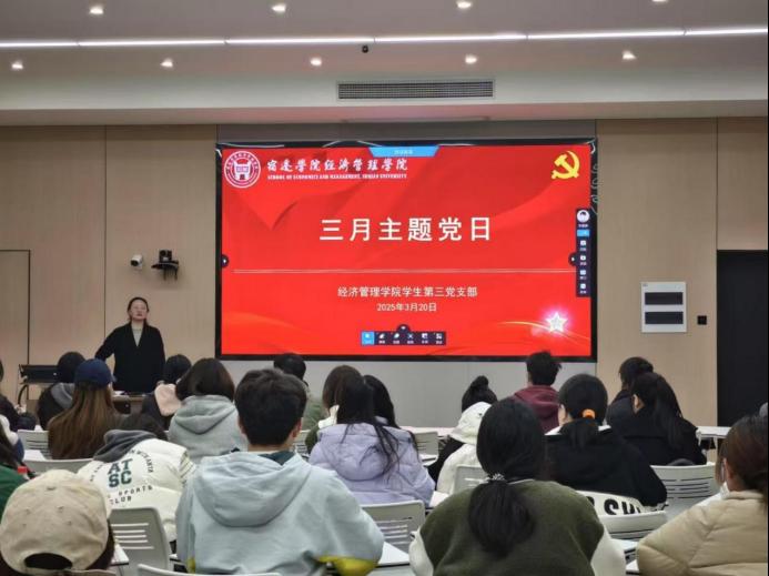 为深入学习贯彻全国两会精神,凝聚青年党员奋进力量,3月20日,经济管理学院学生第三党支部在四阶教室举办“学思想强党性担使命建新功”3月份主题党日活动。支部全体党员通过理论学习、专题研讨等形式,深刻领会习近平新时代中国特色社会主义思想的核心要义。