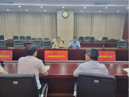 为贯彻落实学院干部大会上潘校长讲话指示精神,顺利做好学院调整组织和后续相关工作,7月10日上午,经济管理学院领导班子在图书馆视频会议室召开第一次研讨会,就学院新成立后相关工作进行研讨,会议由院长肖艳主持。