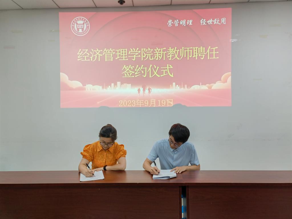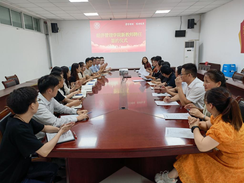 9月19日下午,经济管理学院在院112会议室举行新教师聘任签约仪式。学院副院长姜丽丽主持仪式,副院长刘国巍、全体新教师和导师参加仪式。