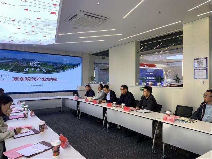 会后,调研团队在许忠荣副院长的带领下参观了京东产教融合示范基地,许忠荣院长进一步介绍宿迁学院与京东集团的合作发展历程,还分享了京东现代产业学院在人才培养和产教融合建设过程中的宝贵经验。