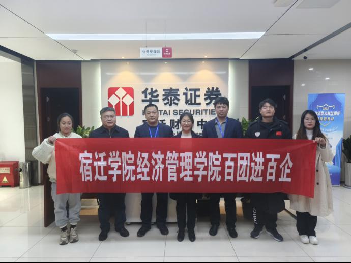 为进一步贯彻落实“访企拓岗促就业”专项行动相关要求,加强与金融机构的深度合作,开拓更多的就业岗位,提升毕业生就业质量。11月27日,由金融系牵头,分管领导沈姣副书记带队,金融系负责人周明栋、辅导员杨光两位老师参加,以及金融系学生前往华泰证券宿迁营业部开展座谈交流,开展访企拓岗,并现场进行校企项目合作进行研讨。