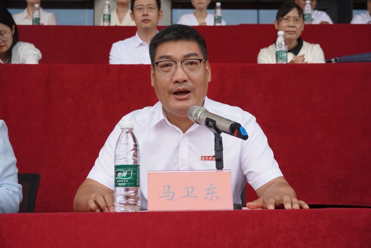军训动员会上,院领导为军训教官颁发聘书,经济管理学院党委书记马卫东教授为军训教官授连旗。随后,马书记进行动员讲话,希望同学们在挑战中学会坚持、在困难中寻求突破、在集体中明白团结。一是志存高远,逐梦前行,在逐梦的道路上奋勇前行;二是团结友爱,携手共进,为实现共同的目标而努力拼搏;三是自律自强,超越自我,在军训中成就更加优秀的自己。同时,马书记要求军训教官在训练中既要确保训练的科学性和合理性,又要严格要求新生,确保每一位同学都能安全地、顺利地完成军训。