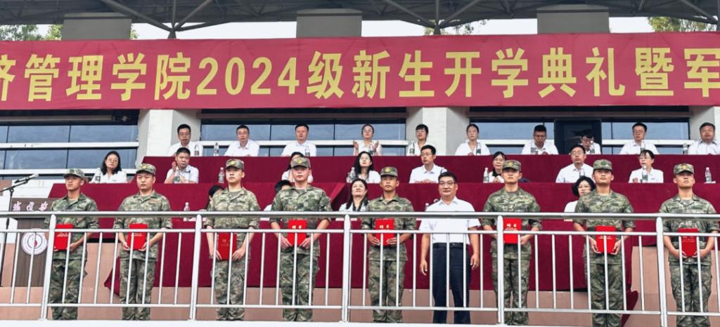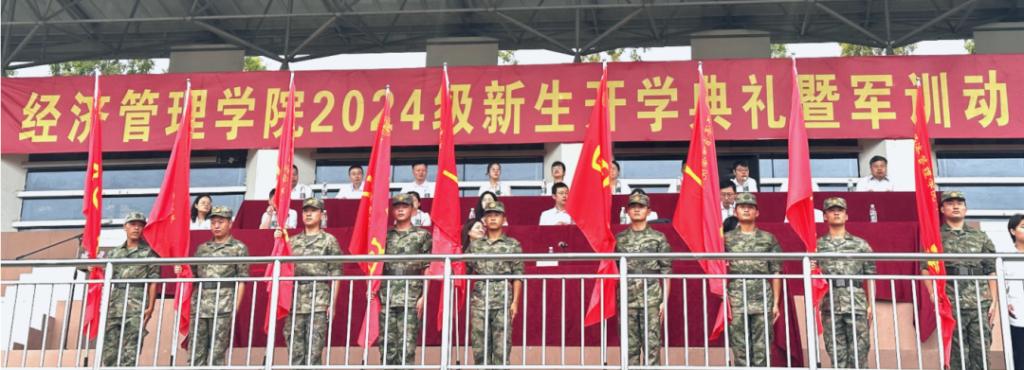 9月2日早晨,经济管理学院召开新学期升旗仪式暨2024级新生开学典礼、军训动员大会。经济管理学院全体领导班子、系主任、新生班主任代表、新生宿舍导师代表、全体辅导员、军训教官和全体学生参加了大会。会议由学院党委副书记沈姣主持。
