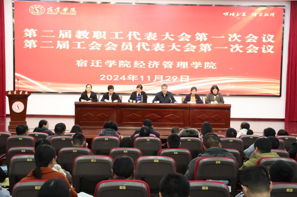 为保障教职工的民主权利,促进学院各项事业的健康发展,11月29日下午,宿迁学院经济管理学院第二届第一次教职工代表大会与工会会员代表大会在求索楼报告厅隆重召开。学院领导班子和教职工共聚一堂,共商学院发展大计。会议由党委书记马卫东主持。