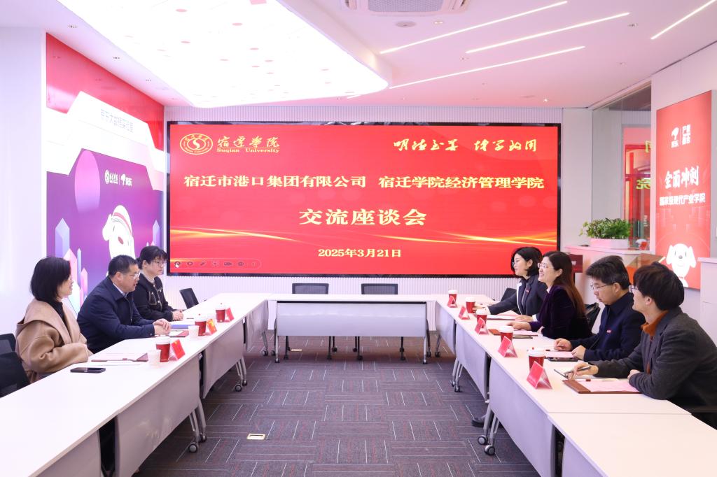 3月21日,经济管理学院与宿迁市港口集团有限公司在京东二楼会议室召开交流座谈会。宿迁市港口集团党委副书记、总经理尤勇,经济管理学院院长肖艳,宿迁市港口集团党委委员、纪委书记李军,党委组织部副部长杜世绮,经济管理学院副院长许忠荣等出席活动。