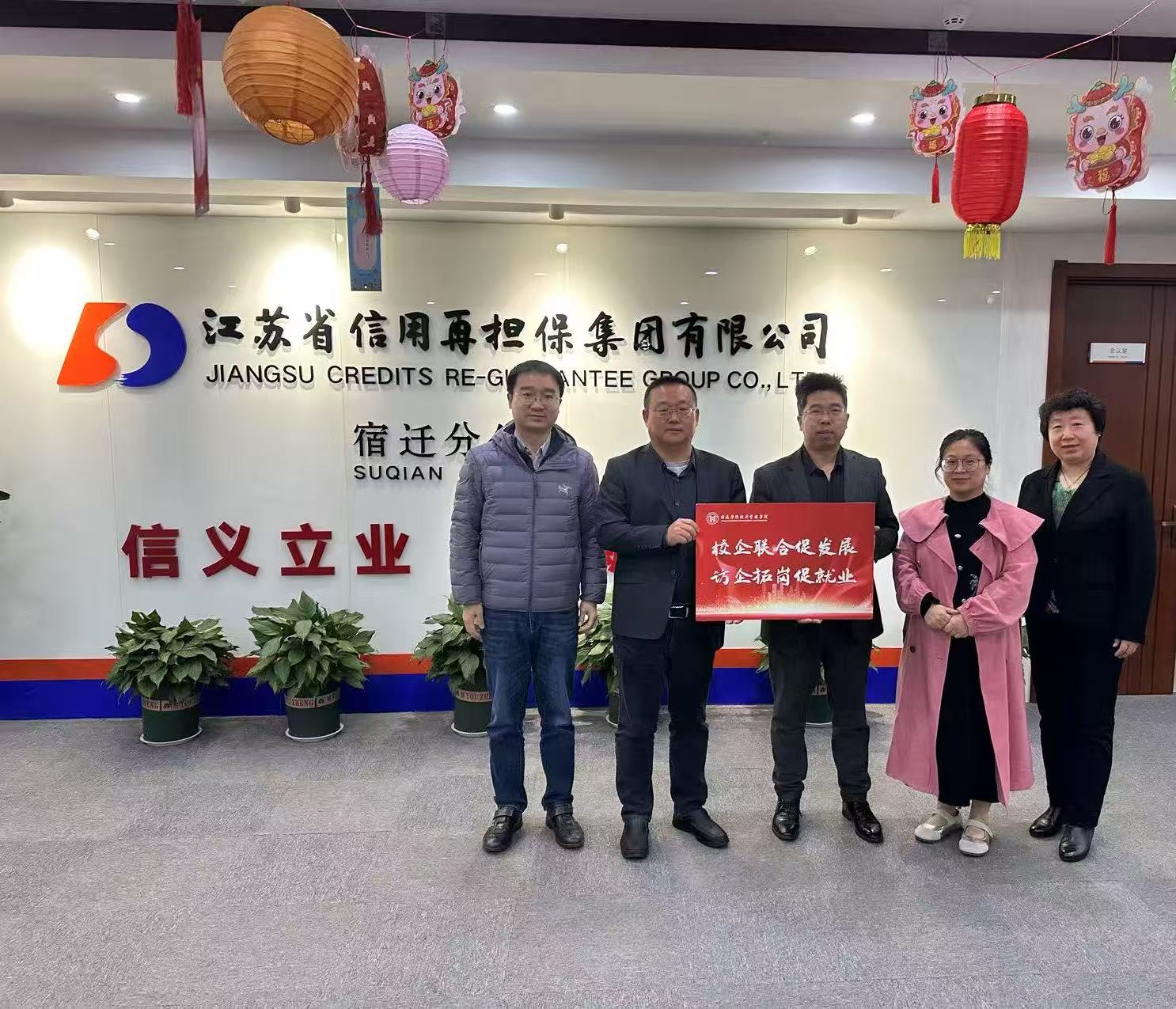 为深化校企合作,拓宽学生就业渠道,推动产学研深度融合,4月2日,经济管理学院副院长许忠荣带领金融学系主任曹玲玲、专业带头人刘晓艳等一行,赴江苏省信用再担保集团有限公司宿迁分公司开展访企拓岗交流活动。江苏省信用再担保集团宿迁分公司总经理宋允智及相关业务负责人热情接待并参与座谈。
