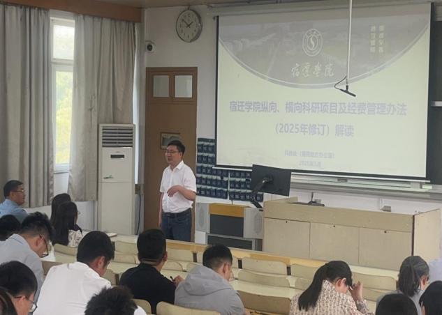 为进一步落实学校科研“放管服”要求,提升学院教师对科研经费政策的理解与运用能力,规范科研经费使用,2025年5月29日下午,服务地方办公室主任孙小荣走进经济管理学院,与老师面对面,围绕《宿迁学院纵向、横向科研项目及经费管理办法(2025年修订)》进行专题宣讲。学院全体教师参加会议,会议由学院科研副院长吴英晶主持。