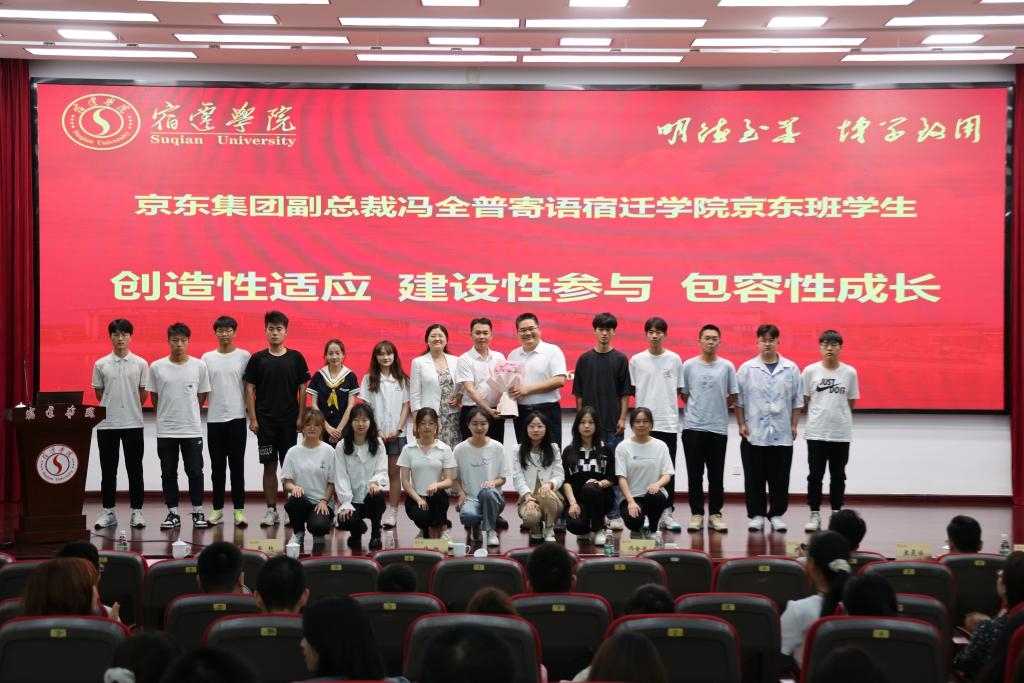 讲座中,冯全普副总裁以充满知识性、趣味性的语言,结合自身经历向同学们分享了考研时期的趣事,富有激情地介绍了中国式现代化的经济内涵以及京东集团的企业性质与发展理念,用丰富的案例讲述京东集团的商业价值、产业价值、社会价值,报告会现场气氛活跃、讨论热烈。最后,冯全普副总裁希望宿院青年学子要怀揣梦想且为之不断奋进、不断求索,寄语京东班学生要“创造性适应,建设性参与,包容性成长”。