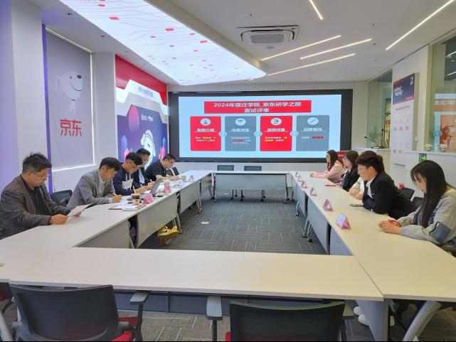 经过前期的报名、综合测评、笔试等环节后,4月24日下午在经管学院许忠荣副院长的指导下首期京东集团北京总部职场研习面试工作在京东现代产业学院大数据实验室顺利开展。本次面试由京东教育研究院副院长、京东产教融合企业导师曹坏春主持,经管学院相关老师协同参与。面试采用无领导小组讨论式方法,分为自我介绍、场景问答、选择问答、应聘者问四个环节,通过面试全面了解学生的综合素质。